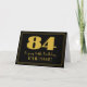 Esta aparência vintage e o Roaring Twenties era inspiraram um design de cartão de saudação com tema de aniversário que apresenta um grande estilo de deco inspirado no número "84", a mensagem "Feliz 84.º Aniversário", um nome personalizável e um padrão de borda que consiste em linhas finas na frente. O fundo da frente é preto colorido. O dentro tem uma mensagem de saudação de aniversário personalizada, ou talvez pudesse ser apagado e deixado vazio se uma mensagem fosse escrita manualmente. Um cartão de cumprimentos de aniversário personalizado como este pode ser uma maneira divertida de entregar cartões de aniversários a alguém que está celebrando seu oitenta e quatro anos. [~Z0000498]