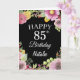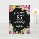 Cartão 85th Birthday Watercolor Floral Flowers Black Card