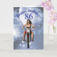 Uma linda moça andando de moto pelas estrelas no céu. Um cartão de aniversário muito diferente para o homem que gosta de uma moto!