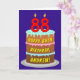 Este design de cartão de saudação de aniversário alegre e divertido apresenta uma representação de um bolo de aniversário de três níveis com velas em forma de número no topo, mostrando a idade de "88", juntamente com a mensagem "FELIZ 88° ANIVERSÁRIO", e um nome de destinatário editável. O dentro apresenta uma mensagem de saudação de aniversário personalizável, ou talvez possa ser apagado e deixado o vazio se uma mensagem for escrita manualmente. Um cartão de cumprimentos de aniversário alegre e personalizável como este pode ser usado para celebrar o oitenta e oitavo aniversário de alguém. [~Z0000620]