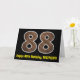 A frente deste design de cartão de saudação temático de aniversário divertido e rústico apresenta um grande número de "88" tendo um padrão de aparência falso inspirado em madeira, juntamente com a mensagem "Feliz 88º aniversário", e um nome personalizado. O dentro apresenta uma mensagem de saudação de aniversário personalizável, ou talvez possa ser apagado e deixado o vazio se uma mensagem for escrita manualmente. Um cartão de aniversário personalizado como este pode ser uma maneira divertida de reconhecer o oitavo aniversário de alguém. [~Z0000431]