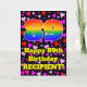 A frente deste design de cartão de saudação colorida e alegre aniversário apresenta um grande número "89" com um padrão inspirado no gradiente do espectro arco-íris. Também apresenta a mensagem "Feliz 89º aniversário", e um nome editável. O fundo da frente apresenta um padrão de formas cardíacas com cores como rosa, vermelho e roxo. O dentro tem uma mensagem de saudação de aniversário personalizada, ou talvez pudesse ser apagado e deixado vazio se uma mensagem fosse escrita manualmente. Um cartão de boas-vindas de aniversário amoroso e editável como este pode ser uma maneira divertida de enviar alguns desejos de aniversário a alguém que está celebrando seu oitenta e nono aniversário. [~Z0000551]