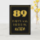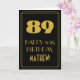 Este design de cartão de aniversário em estilo retrô/vintage inspirado na era dos Anos Loucos apresenta um grande número "89" em estilo art déco, a mensagem "FELIZ ANIVERSÁRIO DE 89 ANOS", um nome personalizado e um padrão de borda composto por linhas finas na frente. A frente tem um fundo preto. O interior tem uma mensagem de aniversário personalizável ou pode ser deixado em branco se uma mensagem for escrita à mão. Um cartão de aniversário personalizável como este pode ser usado para celebrar o octogésimo nono aniversário de alguém. [~Z0000499]