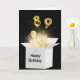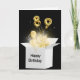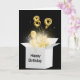 Balões Dourados e feixes de luz cintilantes brilham em uma caixa branca sobre fundo preto no 89º aniversário