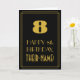 Esta era do Roaring '20's inspirou e o vintage/retro look greeting card design apresenta um grande deco de arte que parece inspirado número "8", a mensagem "FELIZ 8º ANIVERSÁRIO", um nome personalizável e um padrão de borda que consiste em linhas finas na frente. A frente tem um fundo preto. O dentro tem uma mensagem de saudação de aniversário personalizada, ou talvez possa ser apagado e deixado vazio se uma mensagem for escrita manualmente. Um cartão de saudação de aniversário personalizado como este pode ser enviado para comemorar o oitavo aniversário de alguém. [~Z0000499]