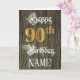 A frente deste design de cartão de saudação de aniversário formal e rico apresenta a mensagem "Feliz aniversário do 90", juntamente com um nome de destinatário editável. Parte da mensagem está no texto do estilo de script do ornamentado. O grande número "90" apresenta um padrão de aparência falsa/imitado inspirado em ouro. O fundo tem um padrão falsa/imitado de grãos de madeira. O dentro tem uma mensagem de saudação de aniversário personalizada, ou talvez possa ser apagado e deixado vazio se uma mensagem for escrita manualmente. Um elegante e editável cartão de cumprimentos de aniversário como este pode ser uma maneira respeitável de entregar cartões de aniversários a alguém que comemora seu nonagésimo aniversário. [~Z0000561]