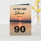 Celebre a alegria de um aniversário de 90 com o cartão de citação de bíblia "Let Your Light Shine" (Mateus 5:16). O texto das escrituras tem uma design ousada 90 mostrando um nascer de sol negro e dourado em um lago pacífico. A bênção envia uma mensagem de fé e amor. Abra a carta para ler o carinhoso verso de aniversário para uma inspiradora celebração de 90 anos.