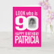 Diversão de 90, rosa quente e personalizadas brancas, cartões de aniversário do marco. Personalize este cartão de aniversário com uma fotografia da aniversariante no meio do número 0. Excelente para adicionar diversão rosa a um marco de 90 anos. Outros itens e cores correspondentes estão disponíveis. Design exclusivo por Sarah Trett para www.mylittleeden.com