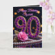Cartão 90th Birthday Purple Amethyst Jewels Pink Rose