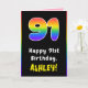Cartão 91st Birthday: Colorful Rainbow # 91, Custom Name