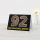 A frente deste design de cartão de saudação temático de aniversário rústico e divertido apresenta um grande número "92" com um padrão de aparência falsa inspirado em madeira, juntamente com a mensagem "Feliz 92º Aniversário", e um nome editável. O dentro apresenta uma mensagem de saudação de aniversário editável, ou talvez pudesse ser apagado e deixado o vazio se uma mensagem fosse escrita manualmente. Um cartão de aniversário personalizado como este pode ser uma maneira divertida de enviar desejos de aniversário a alguém que comemora o seu nonagésimo segundo aniversário. [~Z0000431]