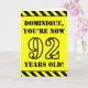The front of this attention-grabbing and fun birthday themed greeting card design features a custom name and the message "YOU’RE NOW 92 YEARS OLD!" in black stencil look text on a yellow colored background. There is also an eye-catching yellow and black stripes pattern at the top and bottom edges of the front. The inside features a customized birthday greeting message, or could perhaps be cleared and left blank if a message is to be written by hand instead. A personalized birthday card like this might be a fun way to send birthday wishes to somebody who is celebrating their ninety second birthday. [~Z0000413]