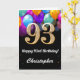 93º Aniversário Cartão de Aniversário de Balões Negros e Dourados Coloridos. Para mais personalização, clique no botão "Personalizar" e use nossa ferramenta de design para modificar este modelo.