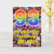A frente deste design de cartões coloridos, rústicos e com tema de outono apresenta um grande número de "93" com um padrão inspirado no gradiente do espectro arco-íris, juntamente com a mensagem "Feliz 93º Aniversário", e um nome editável. A frente apresenta um pano de fundo que mostra folhas caídas rústicas no outono. O dentro apresenta uma mensagem de saudação de aniversário personalizada, ou talvez possa ser apagado e deixado vazio se uma mensagem for escrita manualmente. Um cartão de aniversário personalizável como este pode ser uma maneira divertida de enviar desejos de aniversário a alguém que está comemorando seu 90º aniversário. [~Z0000384]
