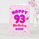 Cartão 93rd Balloon Number Custom Name Birthday Card