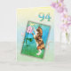 Um gato calico bonito brinca perseguindo uma borboleta amarela que pousou em uma rosa vermelha. Um cartão especial extra para um amante de gatos. Norma Cornes.