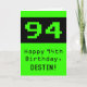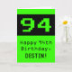 Cartão 94.º aniversário: Nerdy / Geeky Style "94" e Nome