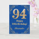 94º aniversário, Azul e Dourado quadro de brilho. Para mais personalização, clique no botão "Personalizar" e use nossa ferramenta de design para modificar este modelo.