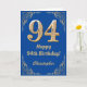 Cartão 94.º Aniversário - Quadro Azul e Dourado
