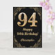 94.º aniversário, Preto e Dourado Quadro Luminoso. Para mais personalização, clique no botão "Personalizar" e use nossa ferramenta de design para modificar este modelo.