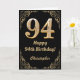 Cartão 94.º aniversário - Quadro negro e Dourado com bril