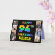 A frente deste design de cartão de saudação temático de aniversário otimista e ousado apresenta a mensagem "HAPPY 94TH BIRTHDAY", com um vibrante espectro multicolorido do arco-íris inspirado em um padrão de gradação, junto com um nome de destinatário personalizável. À esquerda e à direita da mensagem com padrão arco-íris na frente estão algumas fotos que podem ser personalizadas, talvez com fotos do receptor, da família e amigos do destinatário e/ou do(s) remetente(s) do cartão. O dentro apresenta uma mensagem de saudação de aniversário editável, ou talvez pudesse ser apagado e deixado o vazio se uma mensagem fosse escrita manualmente. Um cartão de saudação de aniversário divertido e personalizado como este pode ser usado para celebrar o 94° aniversário de alguém. (Fotografia © Storytree Studios, Stanford, CA.) [~Z0000667]