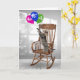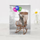 Gato de mesa lúgubre em pé sobre uma cadeira de balanço de madeira e buscando um buquê colorido de balão para o 95º aniversário. O número de idade pode ser alterado.