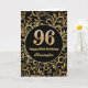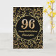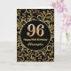 Cartão 96.º Aniversário Padrão Floral Dourado e Preto