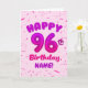 Cartão 96th Balloon Number Custom Name Birthday Card