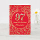 Cartão 97º Aniversário, Vermelho e Dourado Padrão Floral