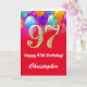 Cartão 97.º Aniversário Balões Vermelhos e Dourados Color