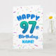 Celebrate their 97th birthday with a bright, cheerful, and personalizable birthday card! This custom name birthday card features a bold number ninety-seven balloon and colorful confetti.