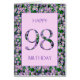 Cartão de aniversário de 98 anos para uma senhora que gosta de flores. Um cartão de aniversário elegante com um fundo de flores margaridas roxas. Este é o cartão perfeito para uma garota que ama tudo floral ou roxo!