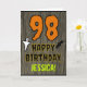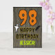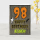 A frente deste design de cartão de saudação temático de aniversário assustador e assustador do Hallowe apresenta um grande número "98" e a mensagem "FELIZ ANIVERSÁRIO", além de um nome personalizado. Há também representações de um morcego e de um fantasma na frente. O dentro apresenta uma mensagem de saudação de aniversário personalizada, ou talvez possa ser apagado e deixado vazio se uma mensagem for escrita manualmente. Um cartão de aniversário personalizado como este pode ser uma maneira divertida de enviar uma mensagem em comemoração do nonagésimo oitavo aniversário de alguém que também cai no Halloween (31 de outubro). [~Z0000410]