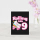 Este design de skate é perfeito para uma festa de patins ou tema de aniversário para uma garota de 9 anos. Se a aniversariante adora rodar o skate, ela vai adorar este design de skate! Apresenta uma citação de aniversário do estilo 'Rolling in 9' com um gráfico de skate de rolo legal com arco-íris e estrelas divertidas e únicas. Design de festa de skate para o 9º aniversário de uma garota!