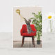 Cinza de gato brincando com balão de folha de ouro e fitas em uma cadeira vermelha para o 9º aniversário. O texto dentro é editável.
