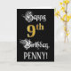Cartão 9.o Aniversário — Script de Rico; Faux Dourado Loo