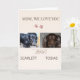 Share a heartfelt moment with this sweet two‑photo design made just for a dog mom. Your pups appear side by side beneath the loving message “Mom, We Love You”, accented with tiny pawprints for a warm, emotional touch. Below the photos, the script word “love” rests above editable name fields, creating a meaningful keepsake she’ll treasure long after the card is opened.