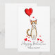 Cartão A Cat Holding a Heart Balloon Valentine Day