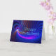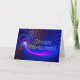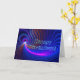 Este cartão de aniversário apresenta uma imagem fractal de várias cores de loops concêntricos sobrepostos a um fundo de campo estrelado.