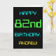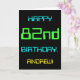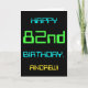 Este simples e divertido design de cartões de aniversário apresenta uma mensagem como "FELIZ 82º ANDREW!". Ele também apresenta uma aparência divertida inspirada na computação digital. O nome na frente e a mensagem no dentro podem ser personalizados. Ele poderia ser enviado ou dado a alguém que comemora seu oitenta e segundo aniversário, e que talvez trabalhe (ou trabalhou antes da aposentadoria) como programador de computador, programador de software, administrador de banco de dados, administrador de rede, engenheiro de eletrônicos ou que, de outra forma, gosta de usar computadores. [~Z0000100]