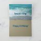 A felicidade vem em ONDAS...APROVEITE o Dia! Fotografia apresentando ondas brancas quebrando em um mar tropical de azul aqua e verde oceano. Cada uma das 3 imagens é de uma perspectiva diferente. A frente é um close-up de toda a água com uma onda espirrando. A parte interna é o surf quebrando na costa arenosa. A parte traseira é uma paisagem marinha total com ondas chegando à costa de um vasto mar e o céu azul no horizonte. Um cartão de aniversário com tema de praia com texto personalizável para muitas ocasiões diferentes com sua mensagem inspiradora e motivacional para um aniversário, formatura ou dia muito especial. Todas as imagens são fotografias costeiras originais da JLW_PHOTOGRAPHY.
