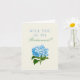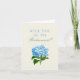 Um cartão de apresentação para o seu partido, este cartão branco suave apresenta uma ilustração antiga de hydrangea azul com texto clássico e fácil de personalizar, permitindo que você escolha como "propor" aos membros do partido noiva.