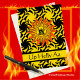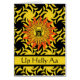 Helly Aa, carta de saudação do festival de incêndio de Shetland com um design de sol e fogo. O Guizar Jarl é centrado dentro ao sol flutuando em uma design de céu feroz. Uma celebração com um tema nórdico escandinavo, realizada no final de janeiro. Arte, imagem e direitos de autor versos © Shoaff Ballanger Studios, 2023.