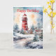A red and white lighthouse in winter. Suitable for a birthday for anyone