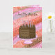 Cartão de Aniversário Feliz Rosa e Castanho para a tua tia. Gráficos bonitos desenhados de bolo de chocolate, velas e presentes.