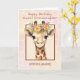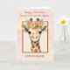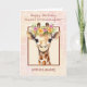Torne seu aniversário ainda mais especial com um cartão personalizado só para ela. Esta doce design apresenta uma girafa doce e gentil com flores cor-de-rosa e amarelas, colocadas sobre um fundo de aquarela pastel com um padrão sutil de girafa. A frente inclui a amável mensagem Feliz Aniversário, doce neta, e pode ser personalizada com o seu nome, criando uma espécie de guardiã que ela vai tesourar. Uma maneira perfeita de celebrar uma neta que enche a vida de riso, amor e sol.