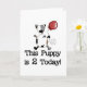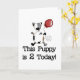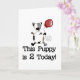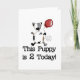 Um design de filhotes giro em t-shirts de segundo aniversário, fatos-calças, canecas, ímanes, cartões, adesivos, bolsas e muito mais com um filhote, um balão de aniversário vermelho, e um texto com a seguinte redação: "Este Cachorro é 2 Hoje!".