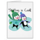 O skate de gelo de dois pinguins na lagoa congelada vestida em chapéus listrados, coloridos do inverno, em scarves, e em mitenes e no texto preto lê a patinagem é legal em t-shirt de patinagem do tema, canecas, cartões, as bolsas, lembranças, travesseiros, hoodies, etiquetas, e muito mais!