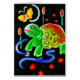 Pintura engraçada, funky da tartaruga em cores preliminares brilhantes, com borboleta e flores.